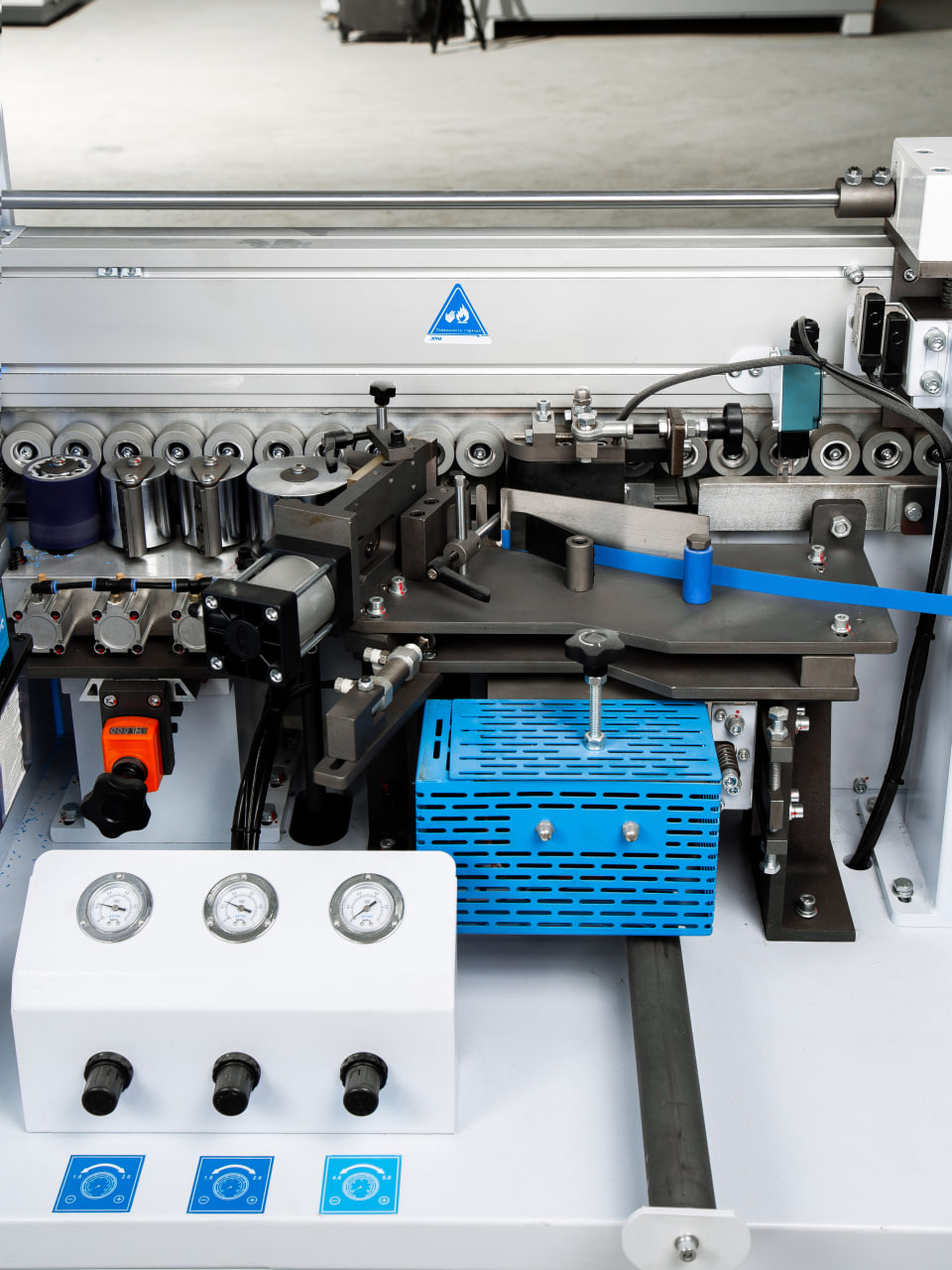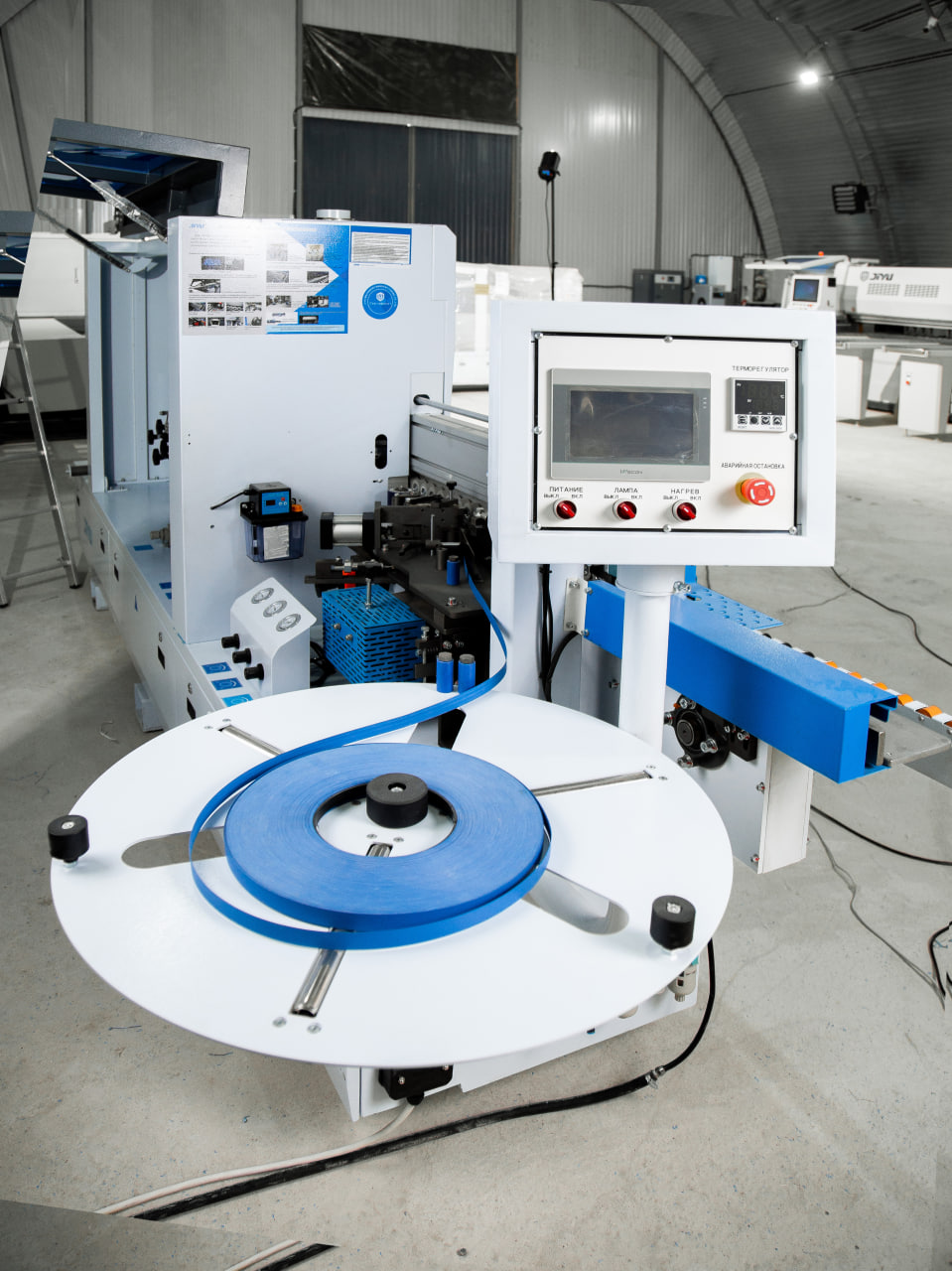 Предназначен для облицовывания прямолинейных кромок плитных материалов рулонными кромками АБС, ПВХ и полосовым кромочным материалом.