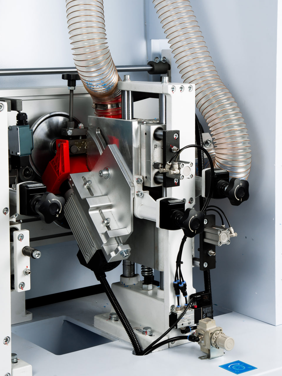 Циклевочный агрегат для кромок толщиной 2 мм оснащен точными копирами и ножами R2. Имеет систему быстрой деактивации при работе с тонкими кромками.