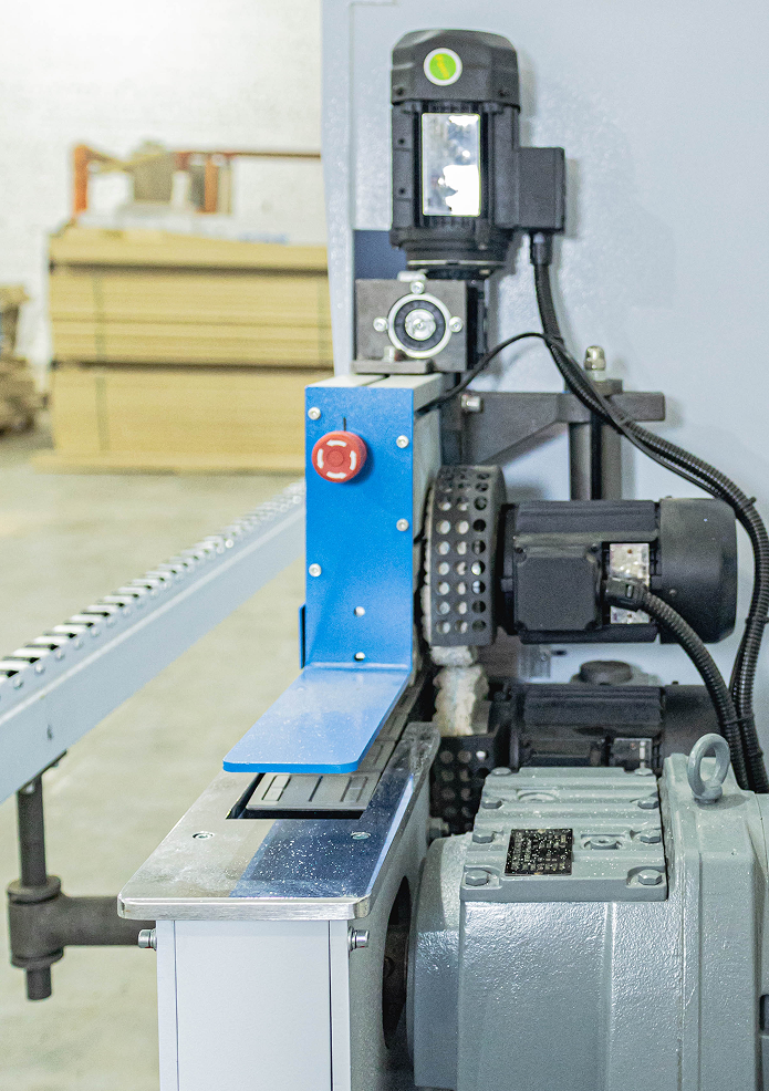 Надежный редуктор приводится во вращение эл. двигателем 2,2кВт и позволяет развивать скорость до 23м/мин. Система направляющих позволяет точно и без вибраций перемещать детали относительно узлов обработки.