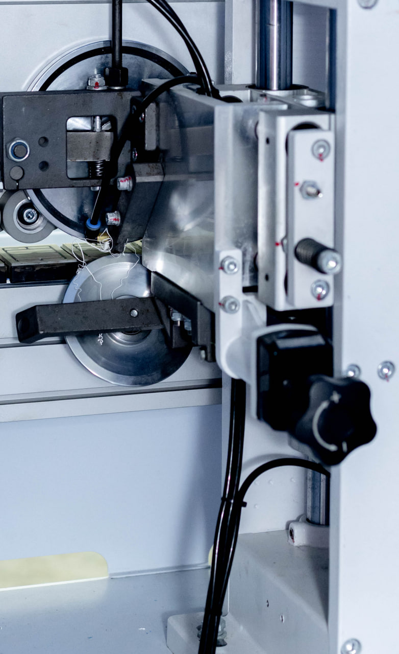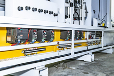 Оснащен высоко оборотистыми двигателями 12000 об/мин; совершая движение по линейным направляющим , обеспечивает точное торцевание в размер пильными дисками D-100мм. Аспирационный кожух обеспечивает отвод стружки из зоны торцевания.