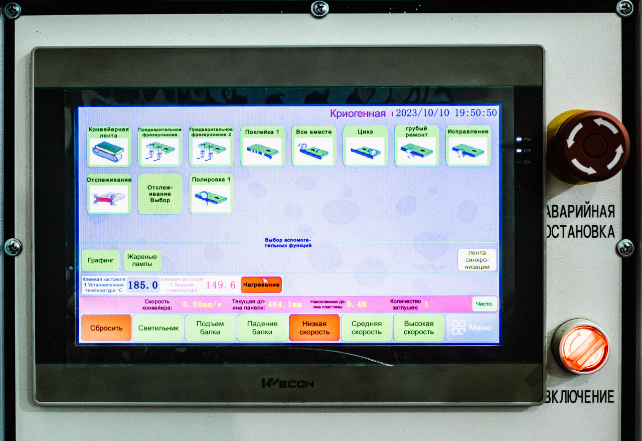 Информативная и простая в использовании панель управления позволяет контролировать процессы обработки каждого узла станка. Система оснащена меню подсказок, сигнализирующем о неисправностях в случае их возникновения. Корпус панели управления выполнен поворотным для удобства работы оператора.