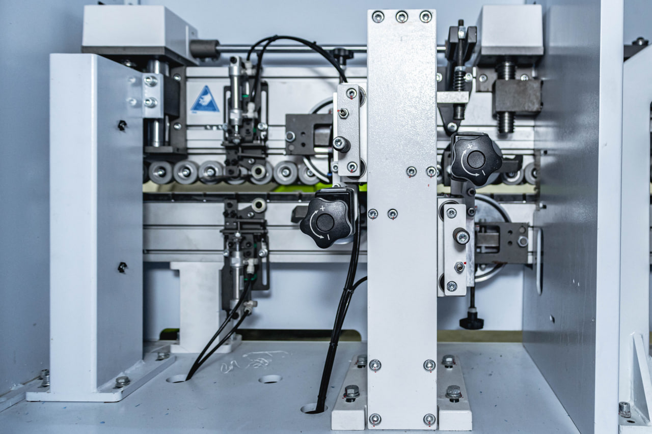 Клеевая ванна с нижним расположением, не требует перенастройки на толщину материала, обеспечивает безупречное нанесение клеярасплава на торец обрабатываемой детали. Узел подачи кромки точно и деликатно подает кромочный материал в зону приклеивания, обеспечивая минимальный свес кромки в начале детали. Может работать с рулонным кромочным материалом толщиной от 0,4 до 3мм и с полосовым кромочным материалом.