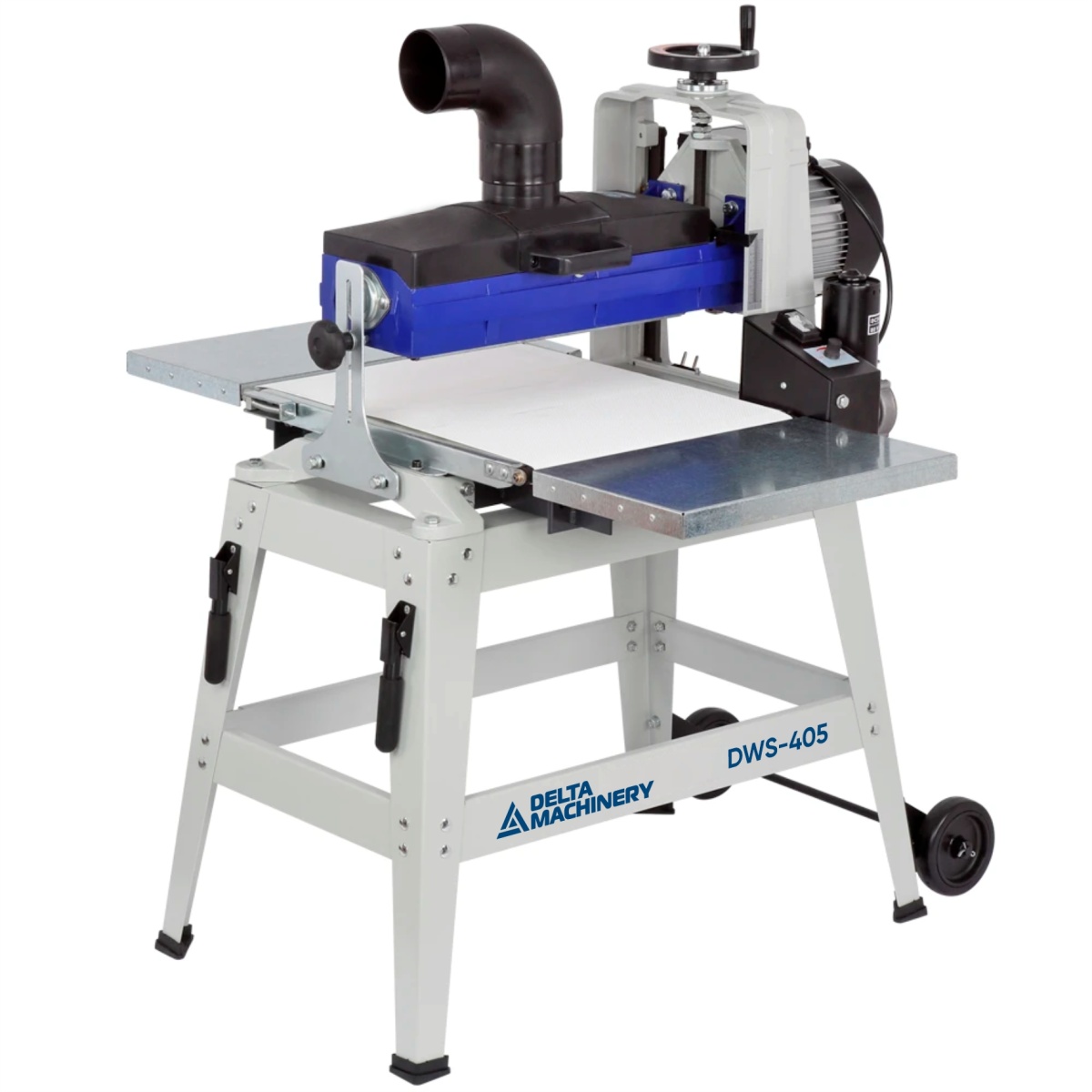 Шлифовальный барабан имеет консольное расположение. При необходимости обработки более широких заготовок можно снять левую стойку и в два прохода обрабатывать детали шириной до 800 мм.