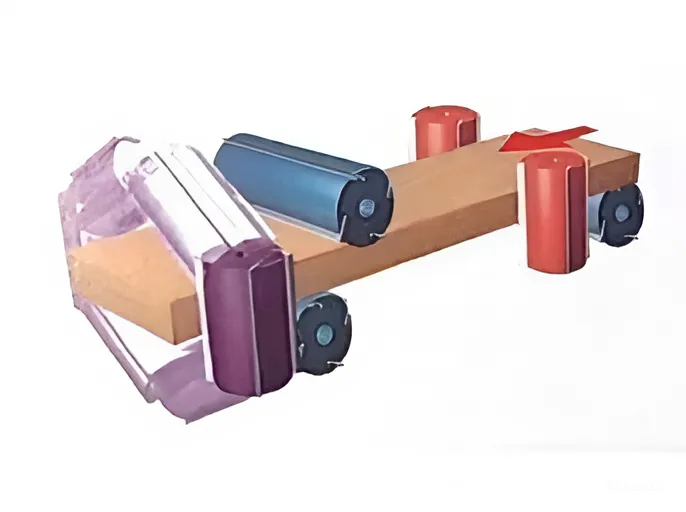 Механизм подачи состоит из верхних и нижних стальных роликов. Рифленые ролики на входе и обрезиненные на выходе, приводятся в движение системой карданных приводов и редукторов. Рифленые ролики обеспечивают стабильную подачу, а обрезиненные ролики на выходе не оставят никаких следов даже на самых мягких породах древесины.
