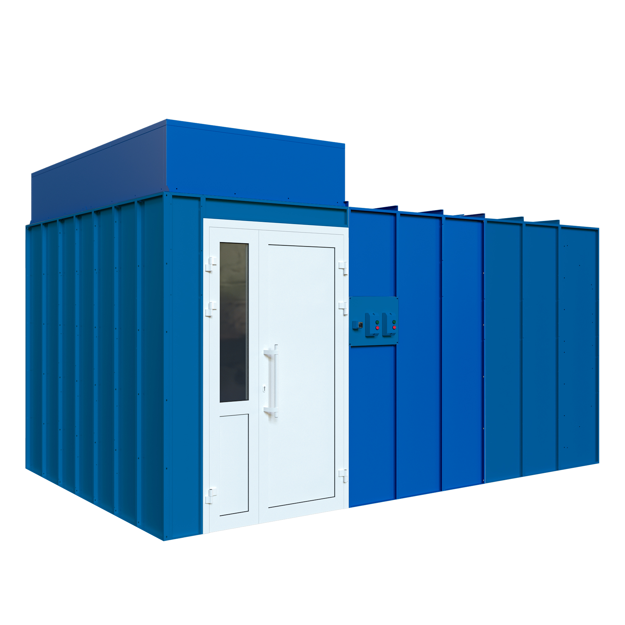 Покрасочная камера представляет собой кабину (комнату), оборудованную картонными фильтрами в рабочей зоне и потолочным фильтром приточной вентиляции.