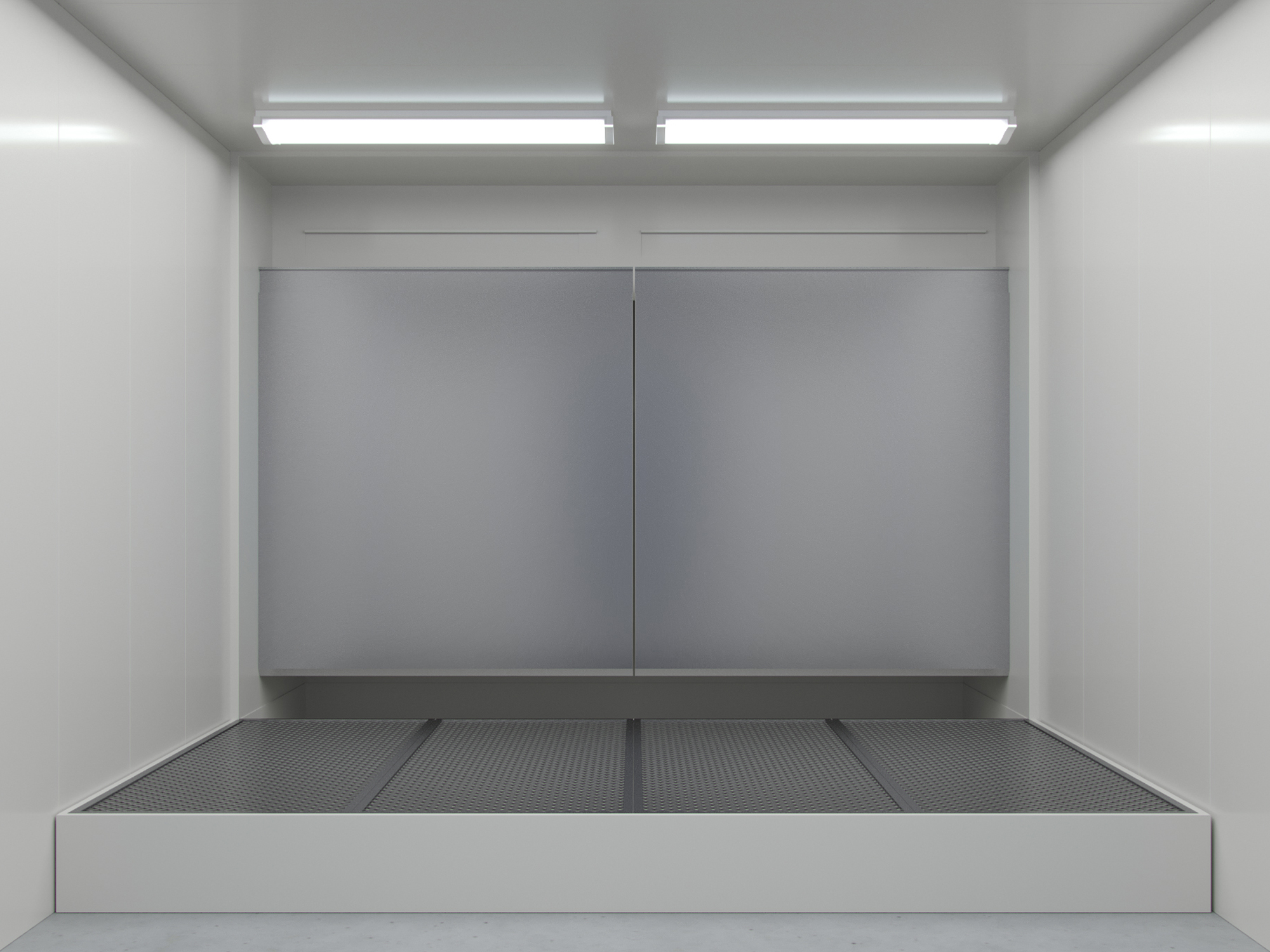«Чистая комната» конструктивно представляет собой герметичную камеру, в которой осуществляется обработка поверхностей под воздействием высокого давления. Приточный воздух проходит через систему предварительной и второстепенной фильтрации.