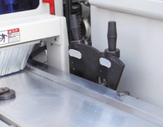 Подающий и рабочий столы при производстве проходят термообработку, что позволяет достичь максимальной прочности, так же столы имеют покрытие из твердого хрома для достижения повышенной износоустойчивости. Регулировка подающего стола осуществляется рычагами настройки.