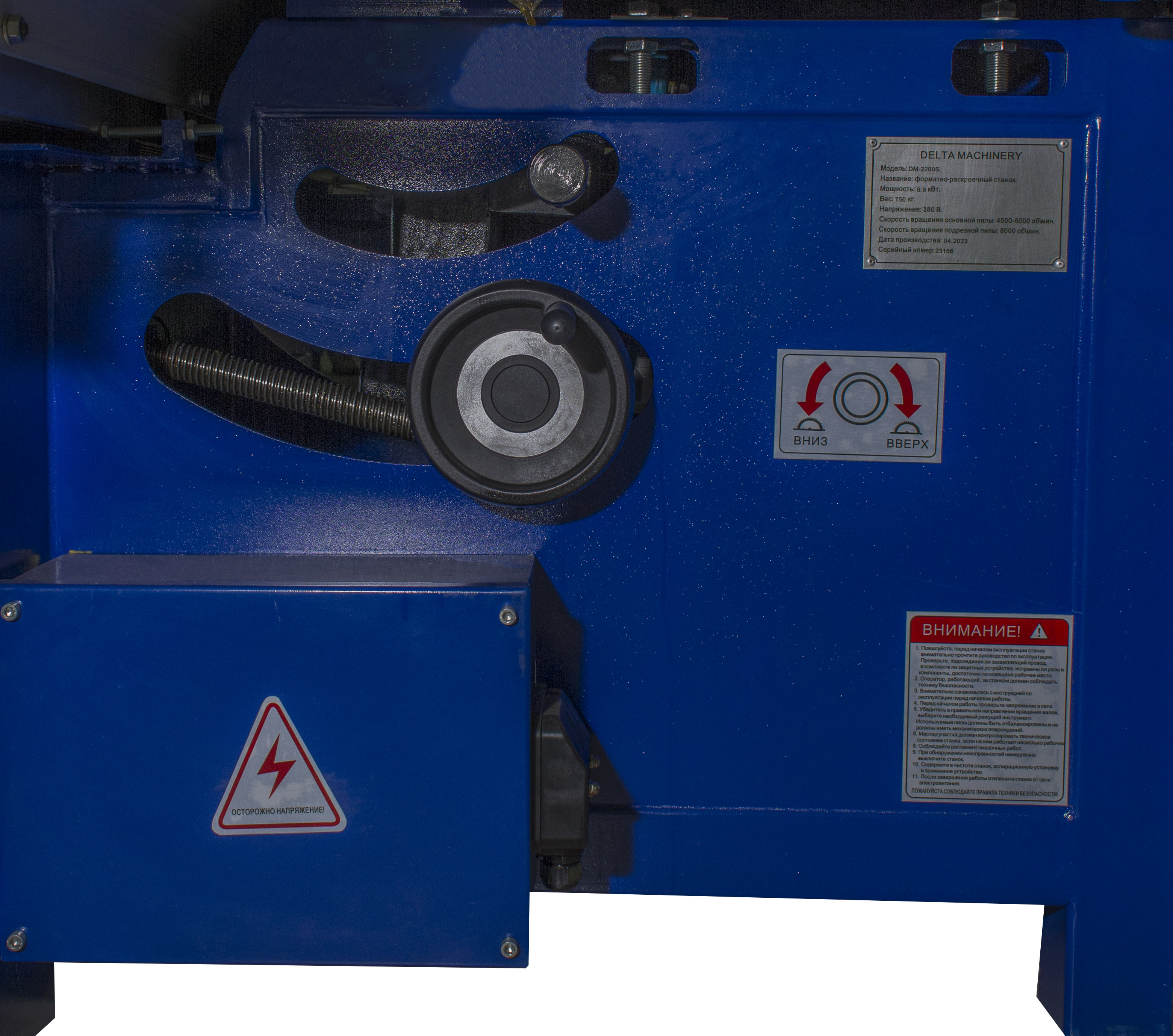 Маховик угла наклона пильного узла находится на лицевой части станка. Маховик подъема-опускания находится сбоку.