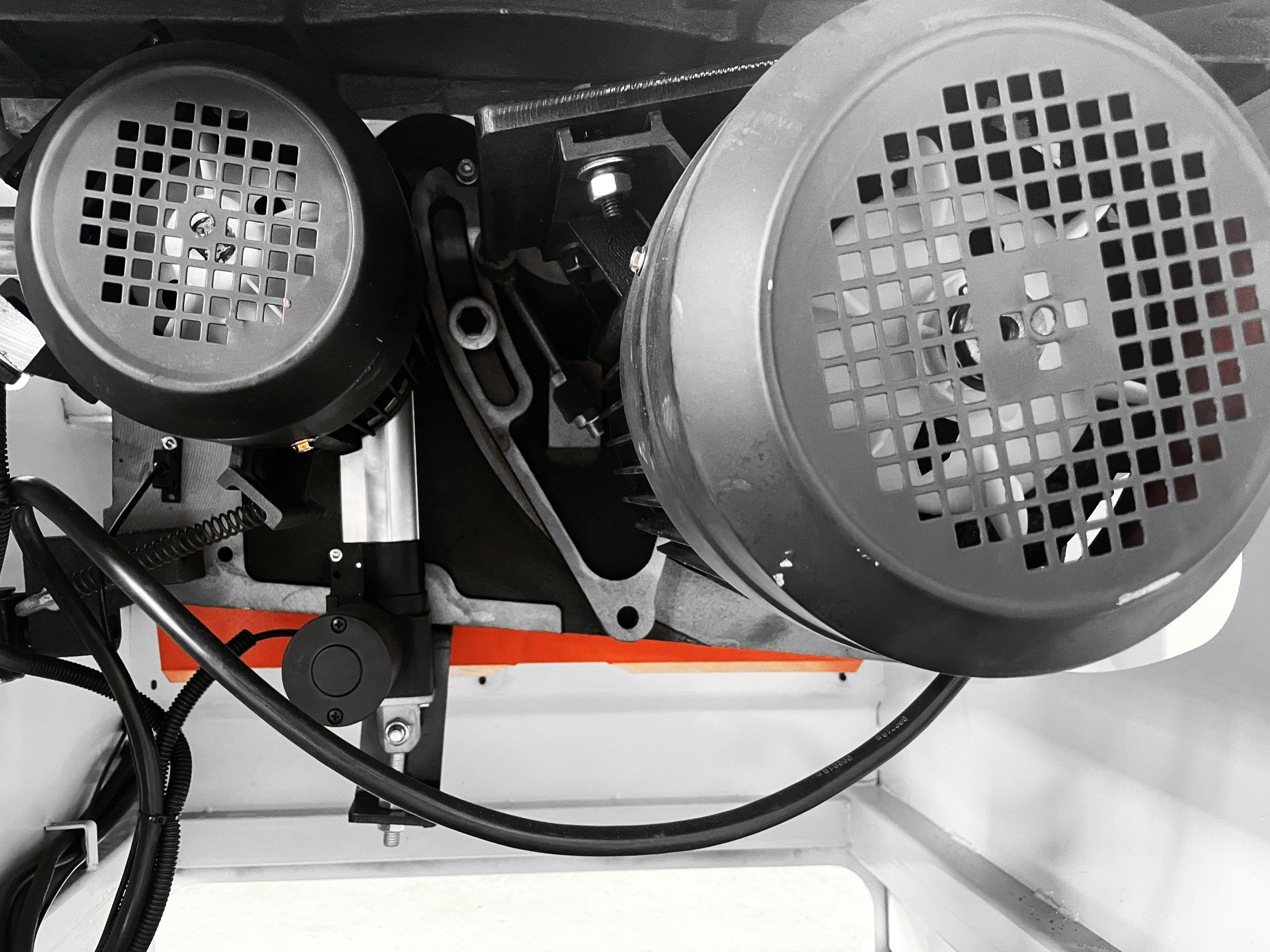 Литой корпус пильного узла обеспечивает высокую жесткость, виброустойчивость и надежность станка. Пильный узел жестко смонтирован со станиной станка, что существенно снижает вибрацию узлов.