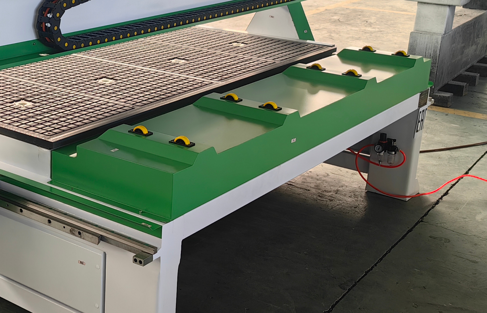 Для удобства смены материала на стол установлены специальные ролики, которые облегчают оператору процесс загрузки листов и значительно ускоряет процесс производства.