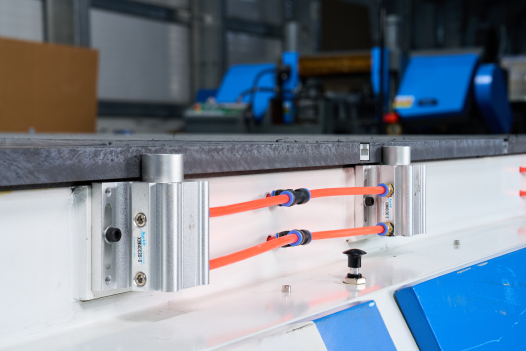 Станок оснащен 7-ю пневматическими упорами для точного и быстрого позиционирования детали в начале цикла.