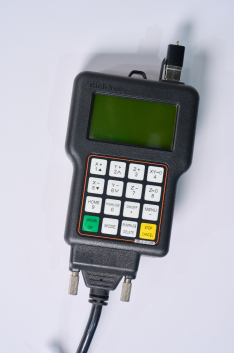 Удобный и эргономичный пульт управления, предназначен для управления станком в ручном режиме. Значительно облегчает работу оператора во время настройки станка, а также снижает риск повреждения оборудования в процессе обработки. Позволяет загружать программы обработки непосредственно с флэш носителей не используя специально установленный компьютер.