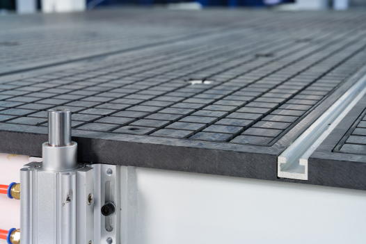 Комбинированный вакуумный стол с 8-ю разделяемыми зонами оснащен дополнительными Т слотами для возможности механического удерживания материалов.