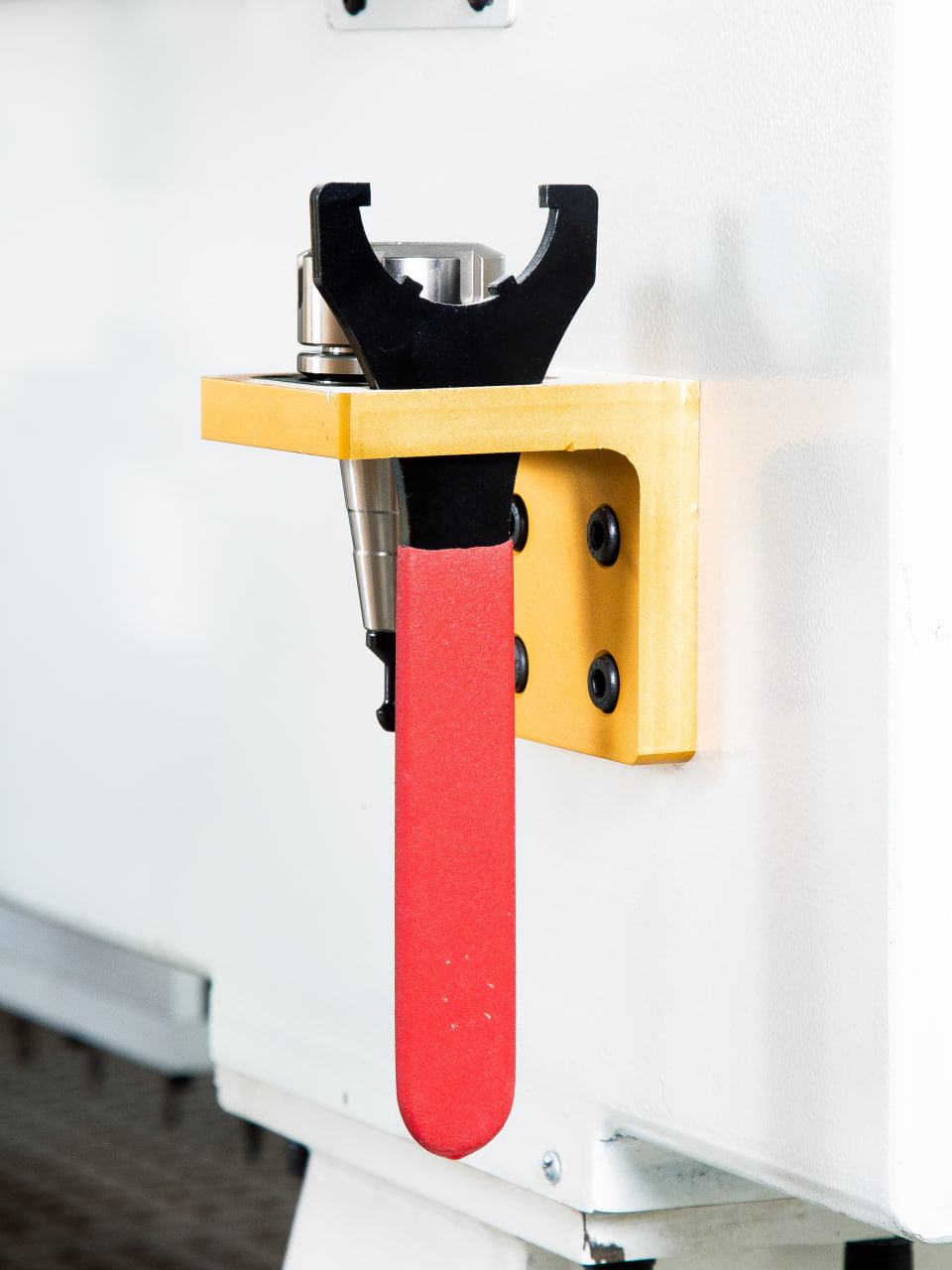 Станок оснащен пневматическими упорами для точного и быстрого позиционирования детали.