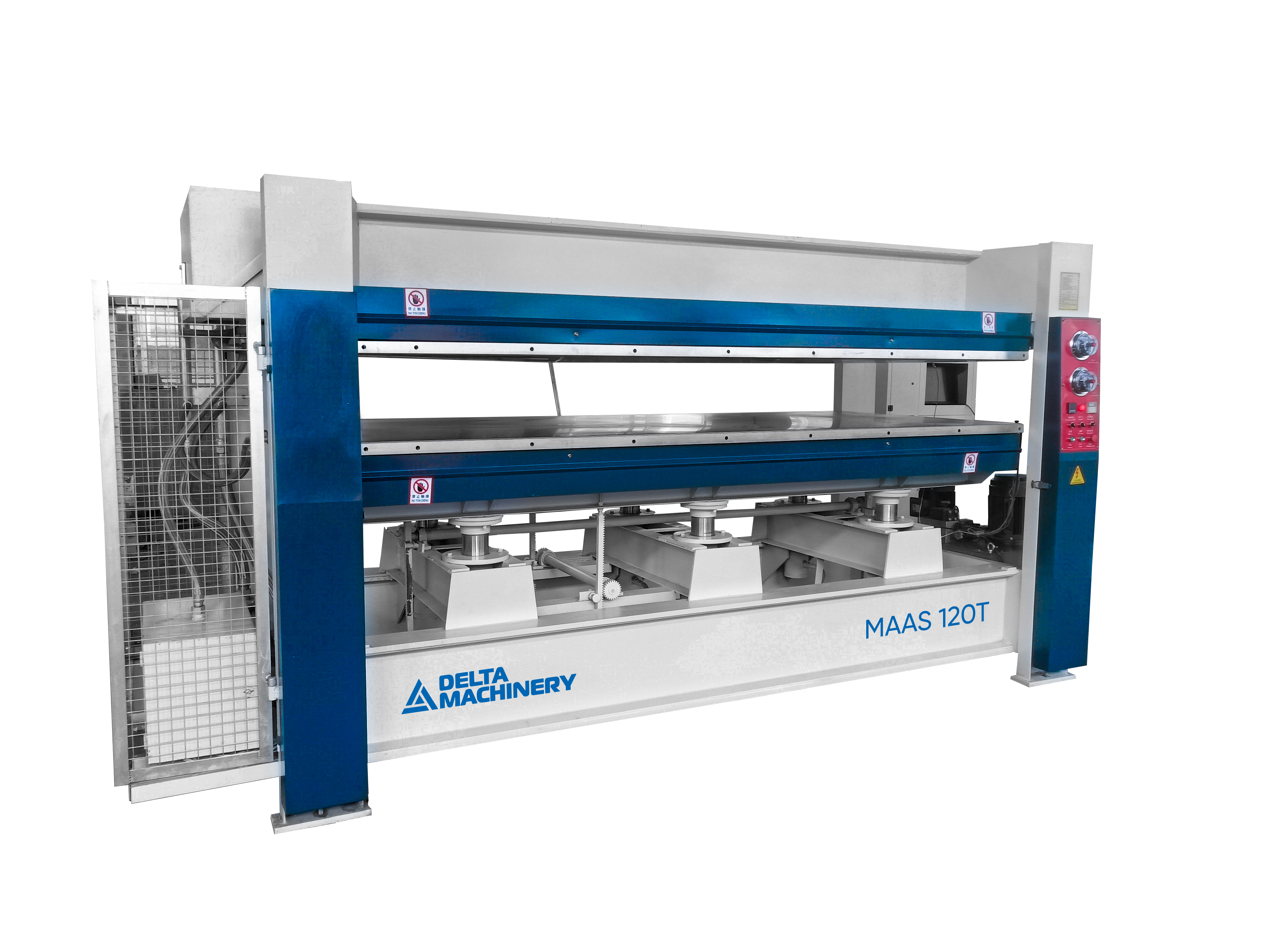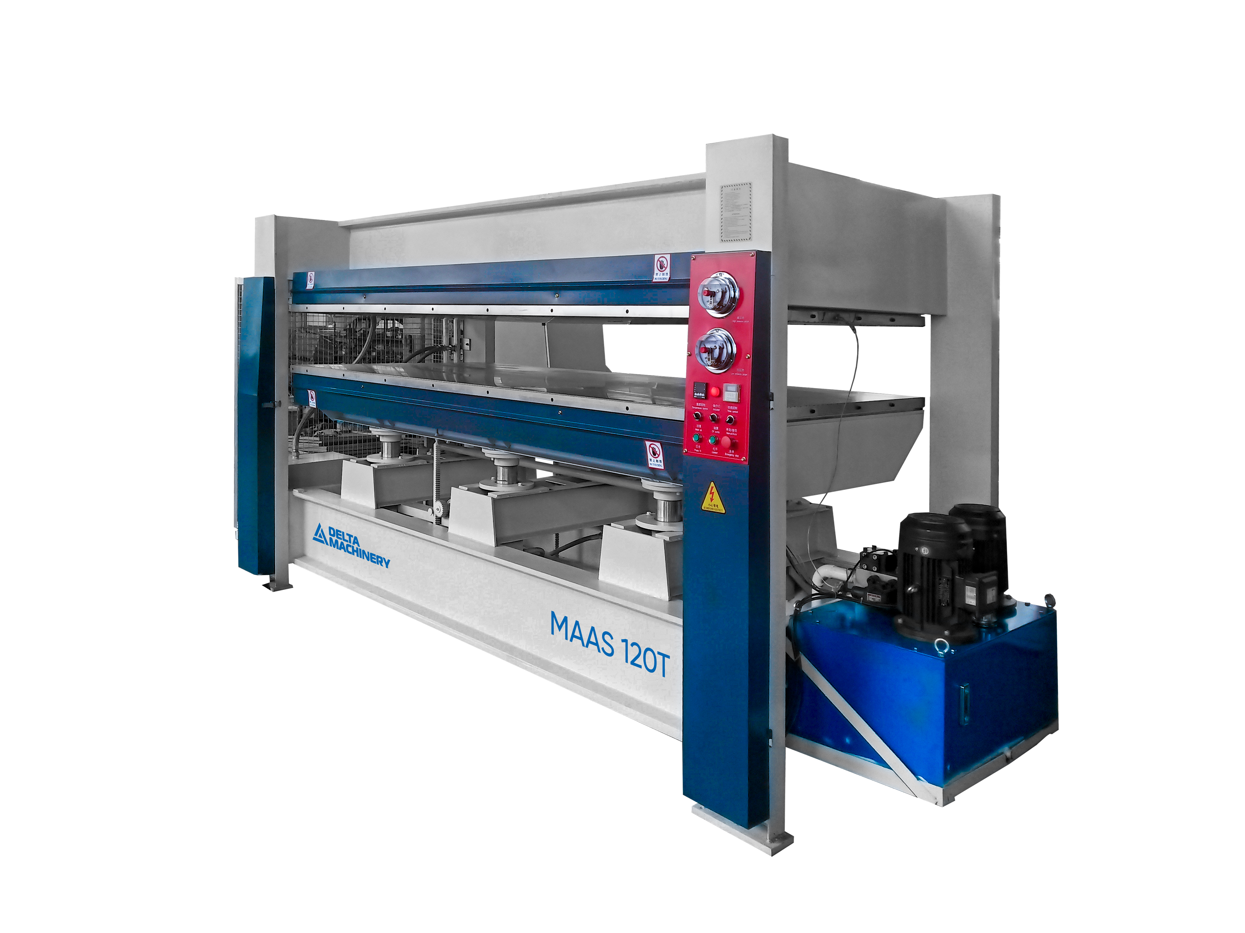 Горячий пресс Однопролётный (с подвижной нижней плитой, с электрическим нагревателем для масла) предназначен для двухстороннего облицовывания ровных поверхностей ДСП, МДФ, ДВП, фанеры, столярной плиты, щитов из массива древесины при помощи различных клеевых материалов различными облицовочными материалами: натуральный шпон ценных пород древесины, пленка ПВХ, пластик при максимальной рабочей температуре 120 °С.