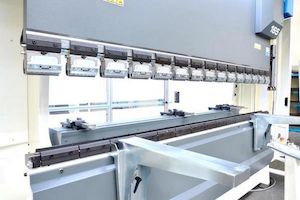 Станок оснащен быстросменной системой фиксации инструмента. Наиболее подходит при гибке небольших заготовок сложной формы, с одновременной установкой нескольких разных сегментов пуансонов.