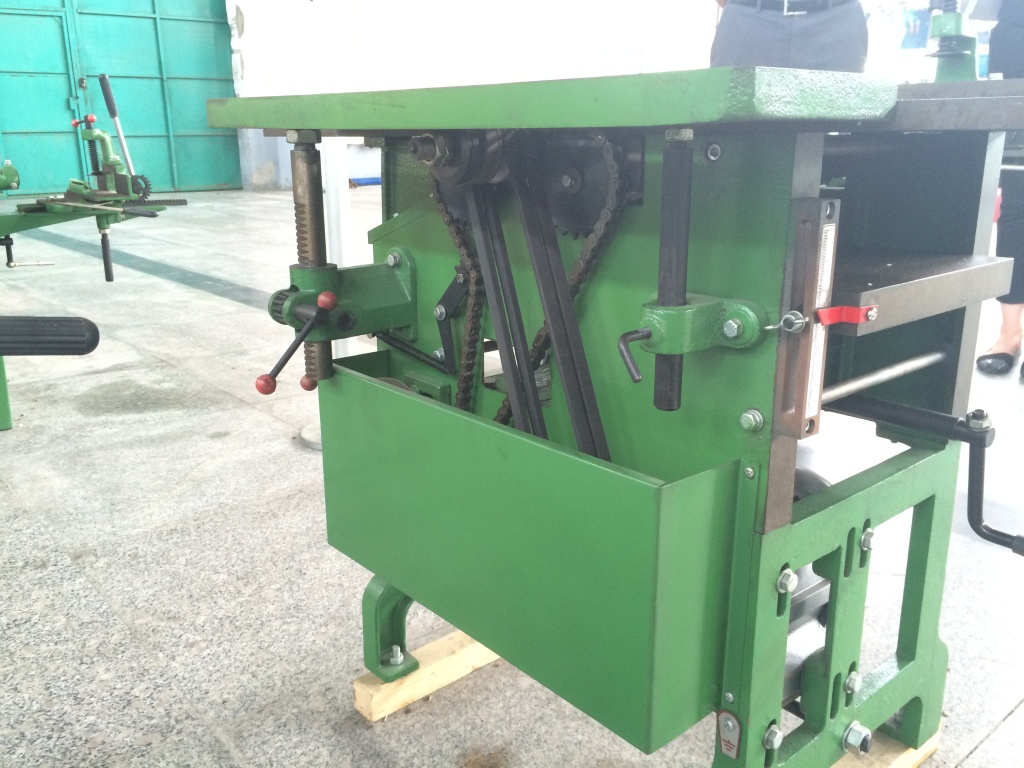 Регулировка стола осуществляется с помощью червячной передачи, что гарантирует постоянство выставленного размера, даже при строгании твердых, тяжелых пород дерева.