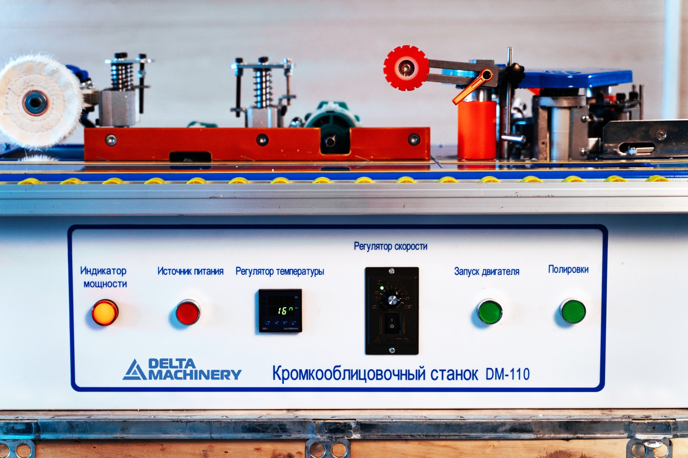 Кромкооблицовочный станок DM 110 — это мебельное оборудованидля облицовывания различных мебельных заготовок с автоматической подачей кромочного материала. Работает как с натуральным шпоном, так и с синтетическими рулонными материалами.