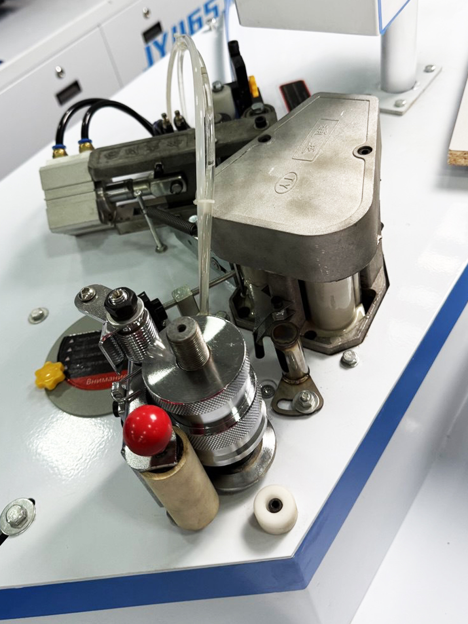 Дополнительный прижимной ролик на пружине для качественного приклеивания внутренних и наружних радиусов кромочным материалом