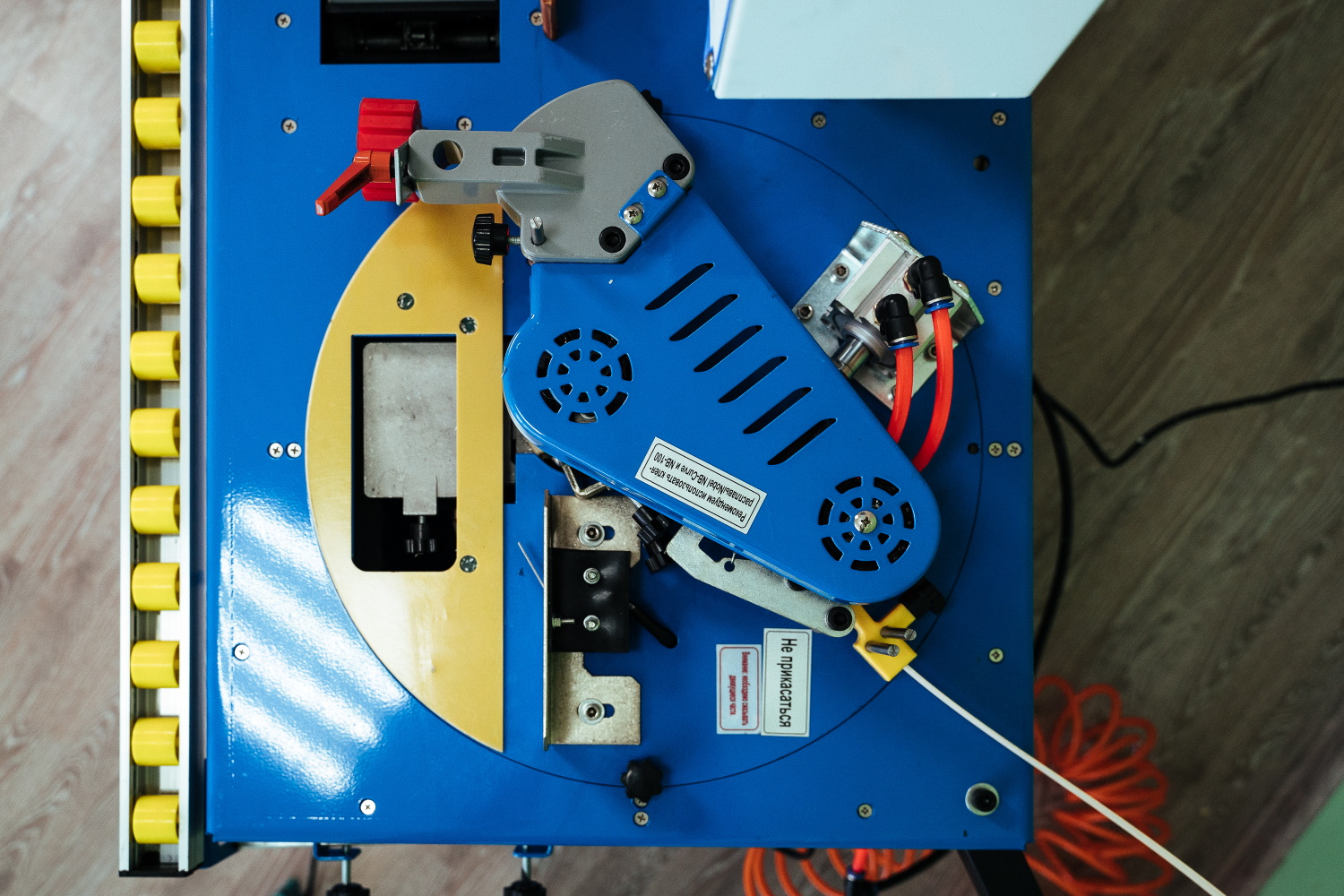 Подача кромочного материала в зону приклеивания осуществляется автоматически из магазина.
