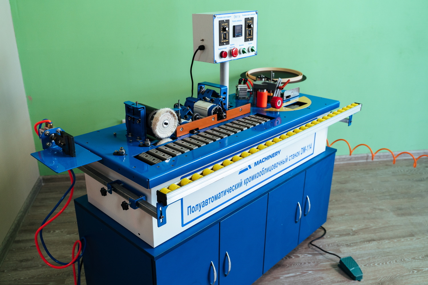 Предназначен для облицовывания прямолинейных мебельных щитов и заготовок натуральным полосовым и синтетическим рулонным материалом.