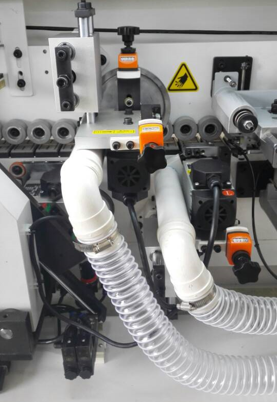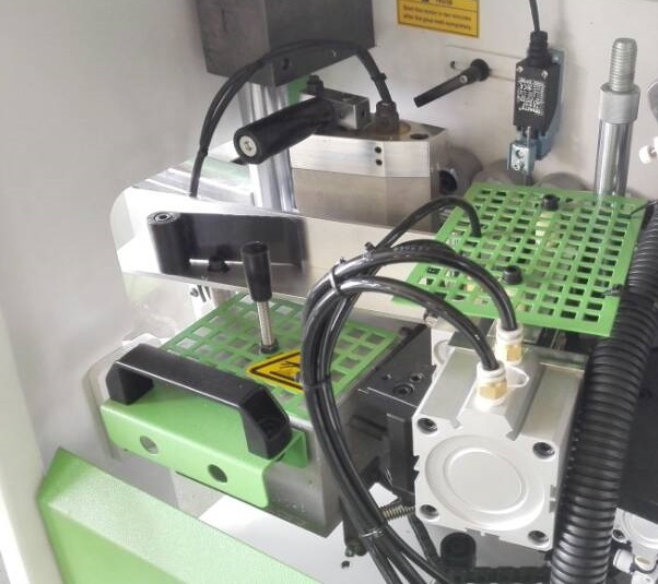 • Фрезерный узел для снятие свесов с вертикальной и горизонтальной настройкой, с двумя высокочастотными двигателями 12 000 об/мин. Радиус фрезы 2 мм.