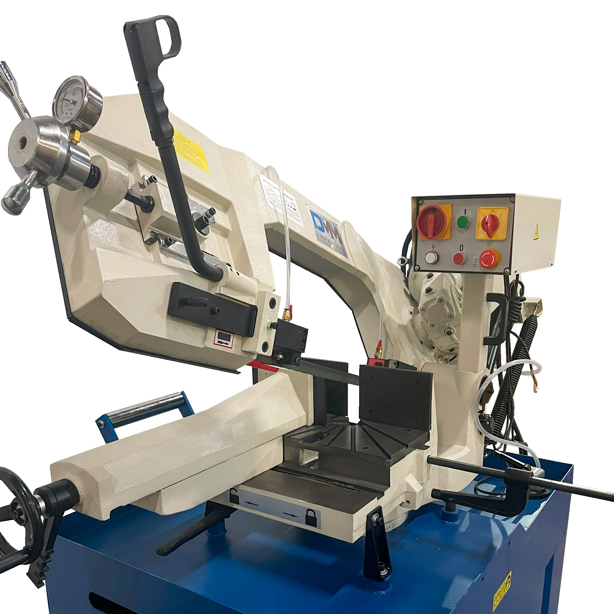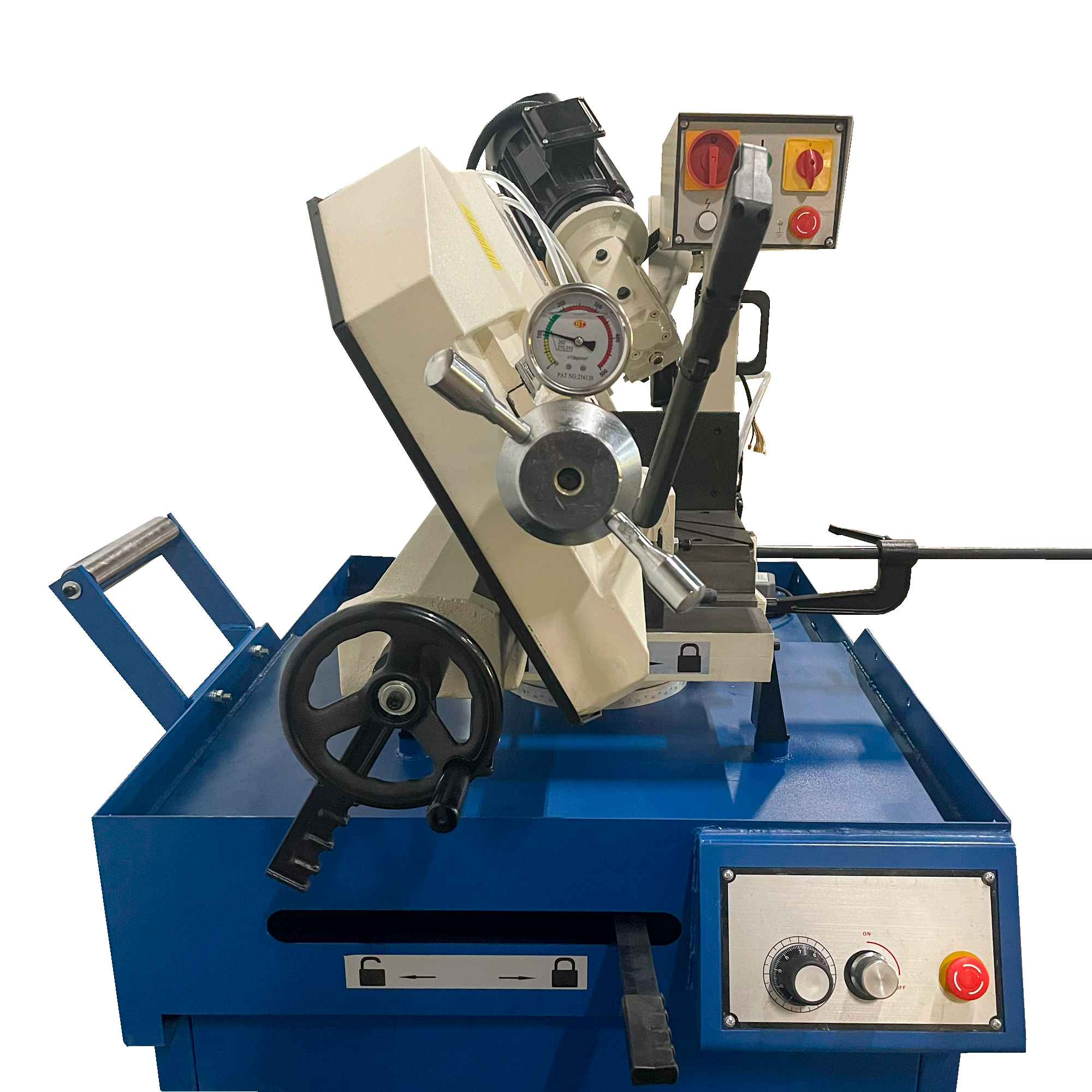 Конструкция станка представляет собой надежное и массивное основание (станина), на котором установлена прочная пильная рама из чугуна с редукторным приводом и ленточнопильным полотном.