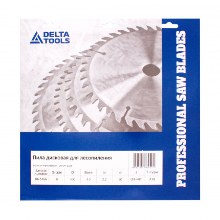 Дисковая пила DELTA TOOLS 300х50х3.5/2.2 Z(18+4) предназначена для продольного распила всех типов пород древесины любой влажности.