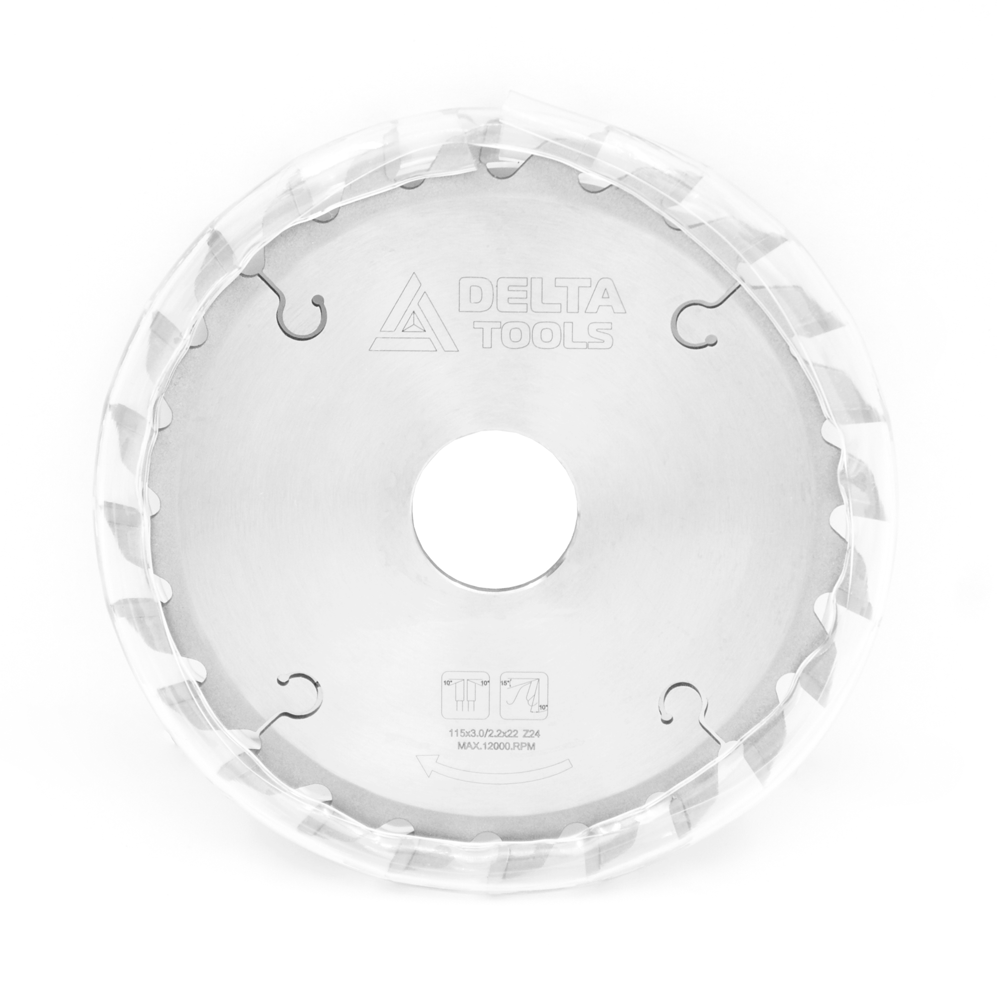 Пила торцовочная DELTA TOOLS 115x22 Z=24 предназначена для обрезки кромки по торцам заготовки, при обработке на кромкооблицовочных станках.