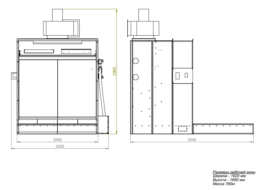 Размер корпуса с вентилятором ДхГхВ: 2940х2550х3130 мм