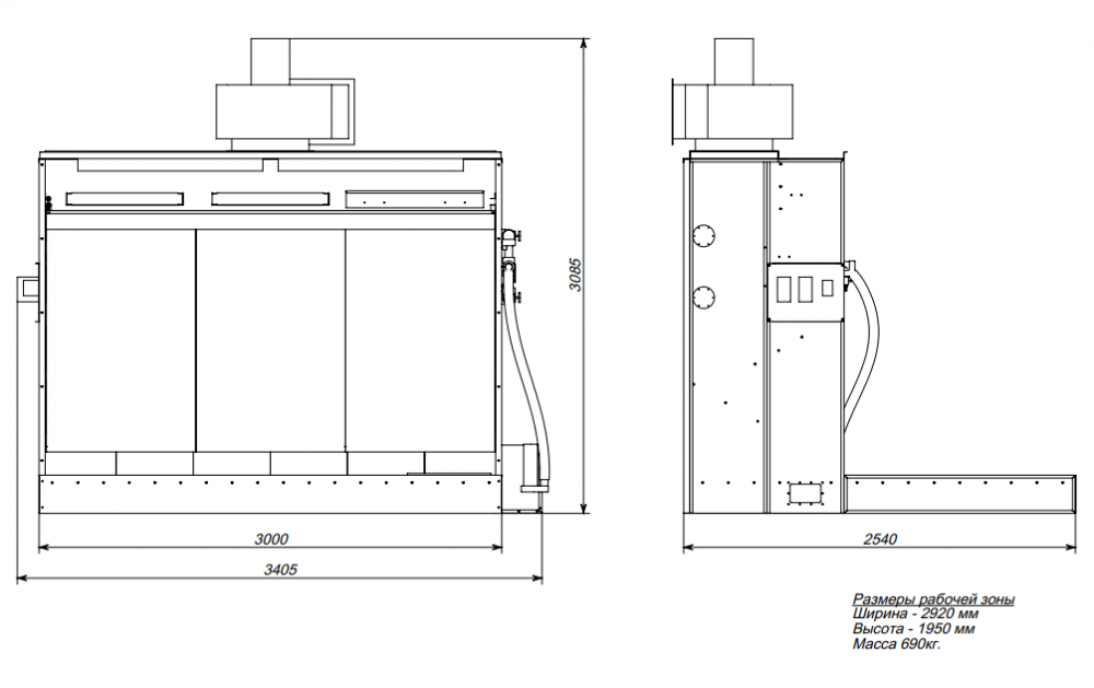 Размер рабочей зоны ДxГ: 2920х1500 мм
