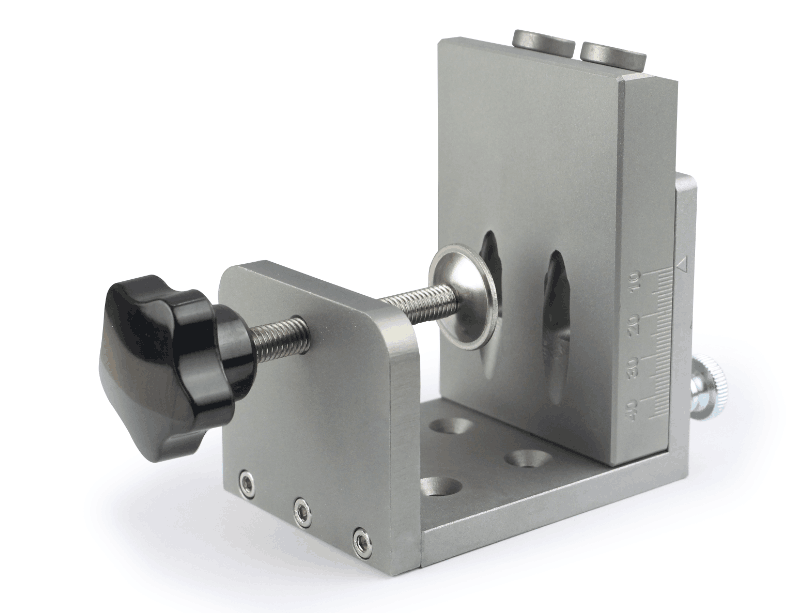Устройство позволяет сделать столярное соединение на косой шуруп. соединение на косой шуруп. Имеет алюминиевый корпус, благодаря которому приспособление устойчиво к большой нагрузке.