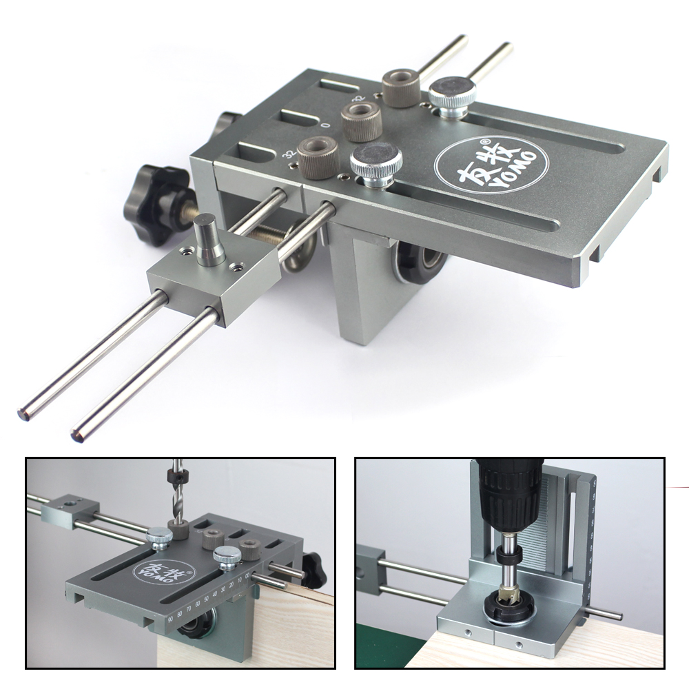 В комплекте имеются сменные втулки под различные диаметры сверел. Для сверления в торец имеется 3 отверстия с шагом 32 мм. В комплекте сверла 6мм, 8мм, 10мм, 15мм.