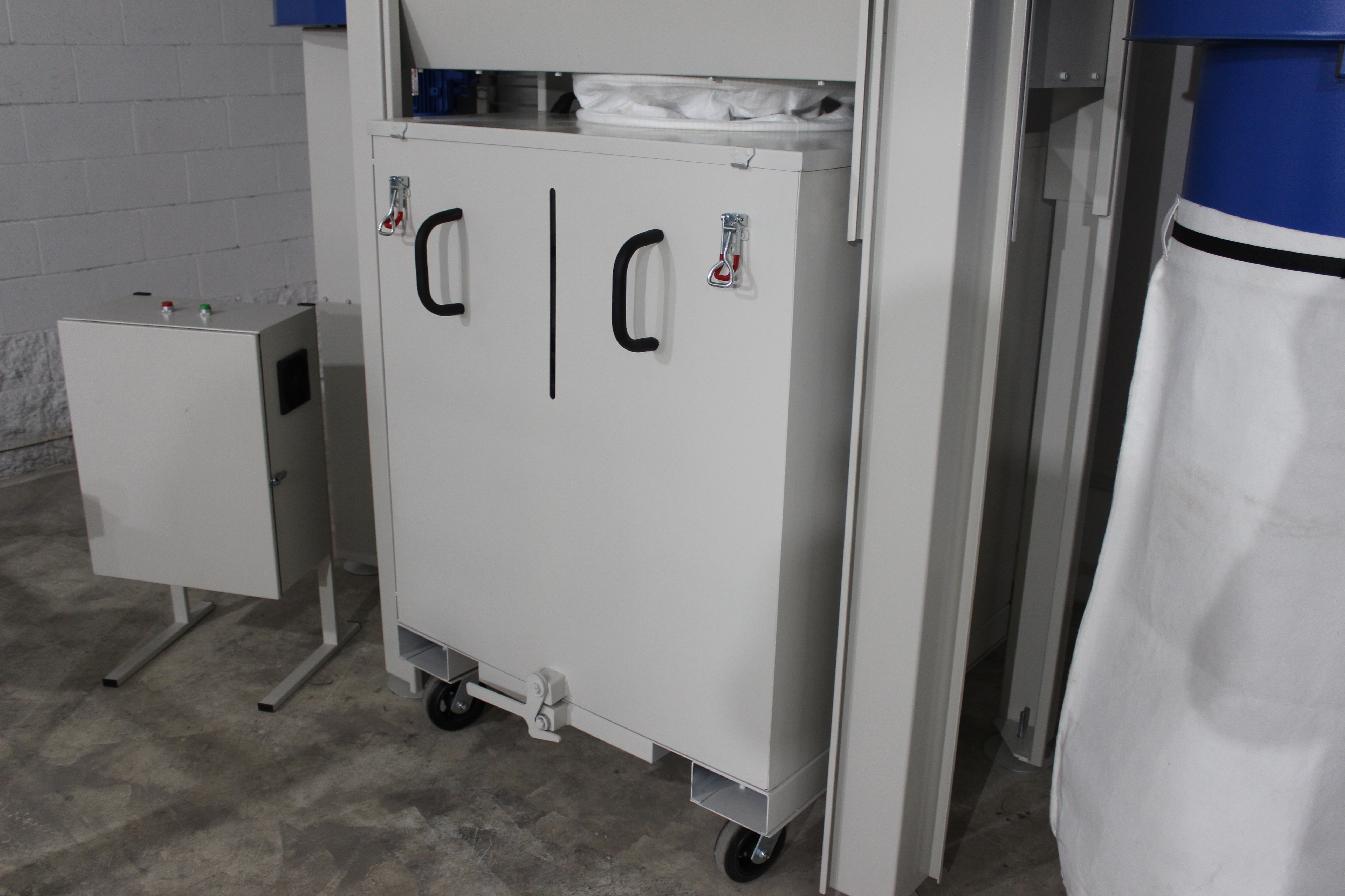 - Удобство утилизации пыли и отходов с помощью выкатного контейнера «Биг Бега» объемом 1 куб. м. Контейнер так же можно вывозить вилочным погрузчиком, для этого под вилы предусмотрены специальные профиля.