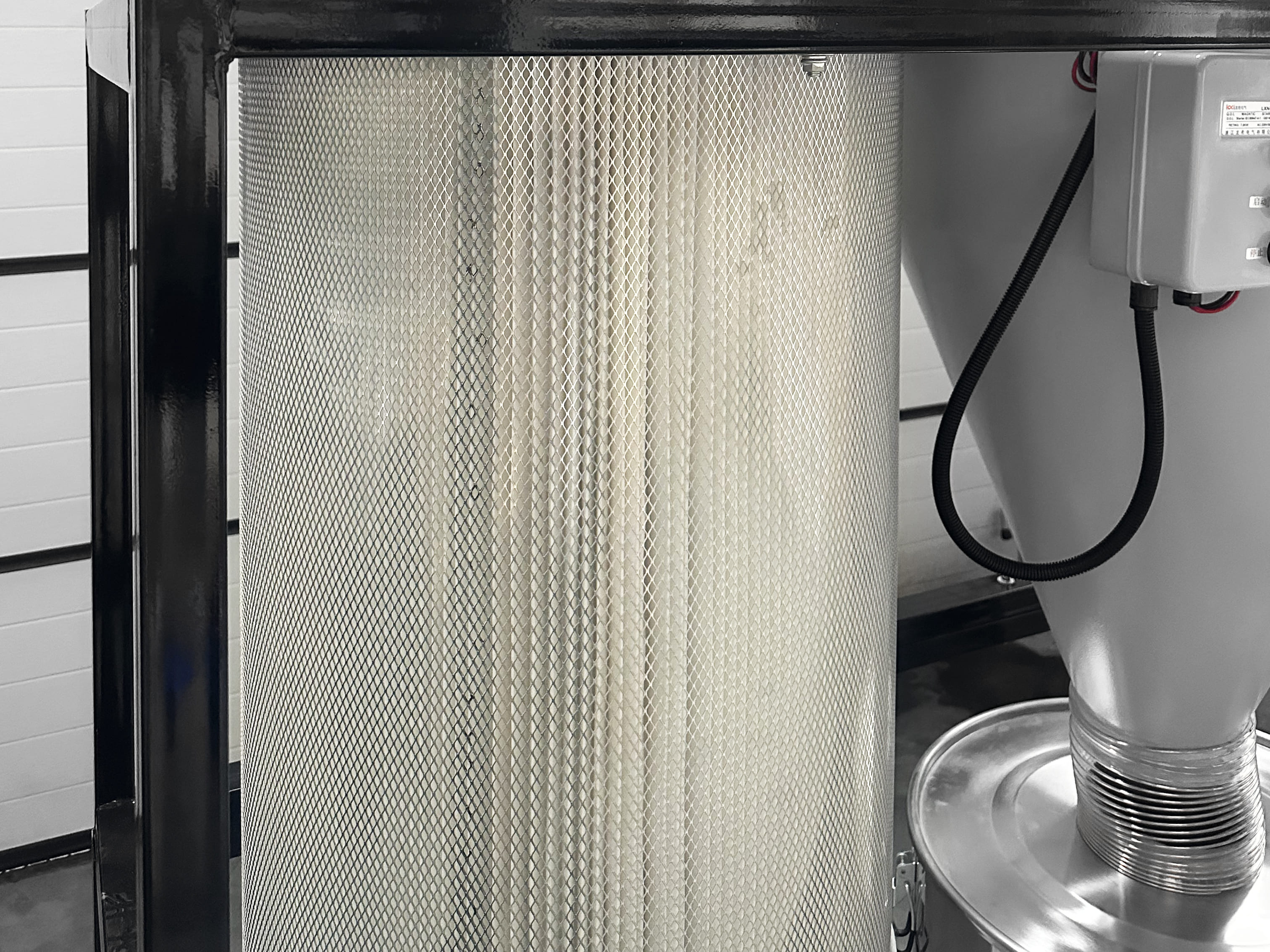 В данном отсеке происходит очистка воздуха от твёрдых загрязнений (стружка, опил и т.д.) при помощи центробежной силы происходит отделение «тяжелых» частиц от воздушного потока.