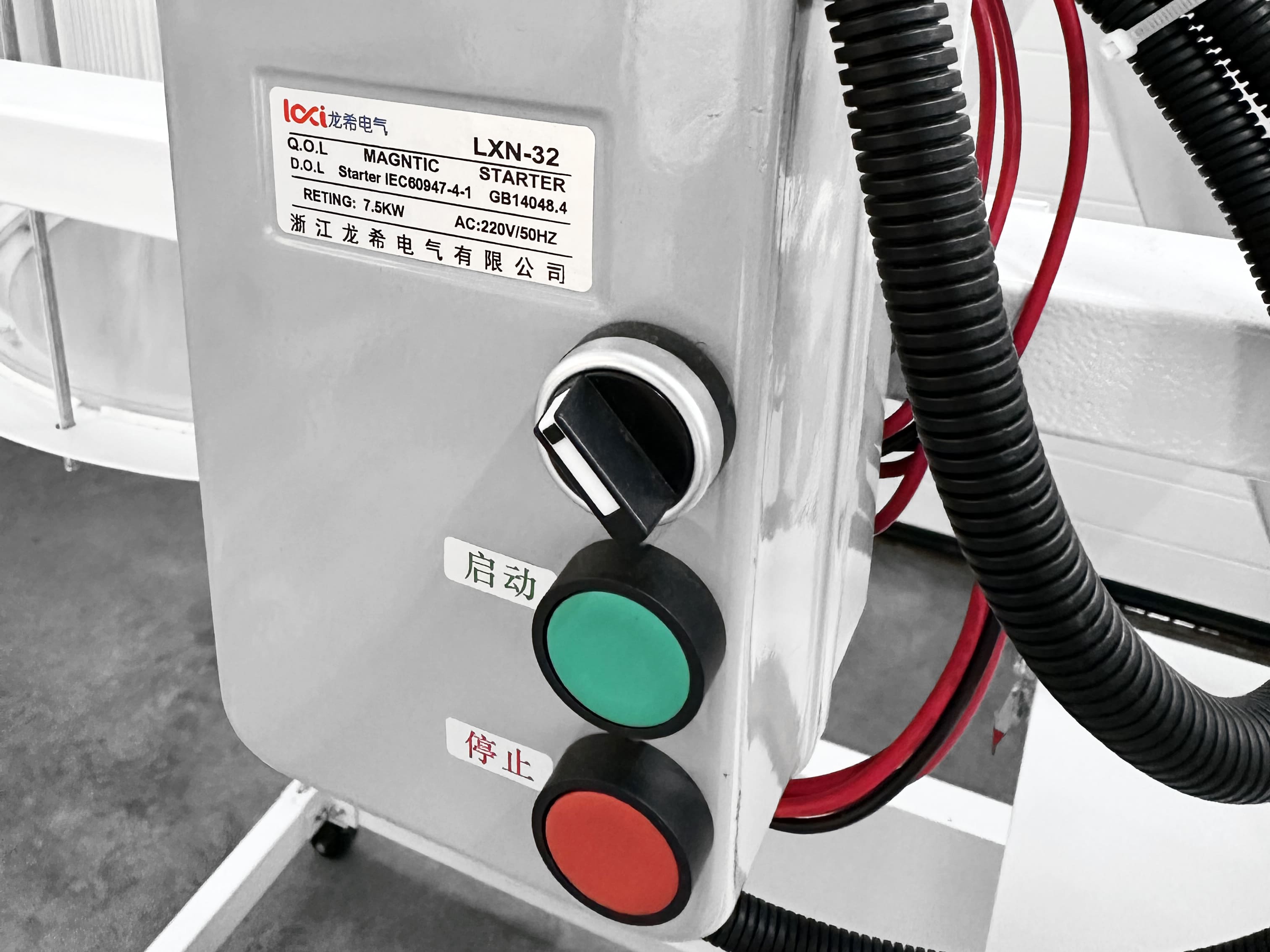 Промышленный пускатель имеет кнопки включения и выключение, обеспечивает надежный запуск двигателя.
