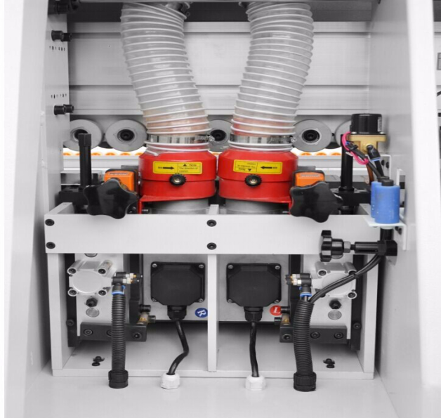 • Фрезерный узел для снятие свесов с вертикальной и горизонтальной настройкой, с двумя высокочастотными двигателями 12 000 об/мин. Радиус фрезы 2 мм.