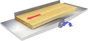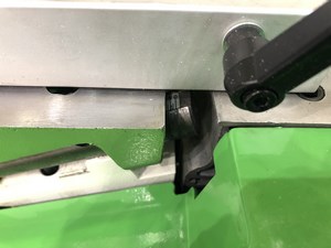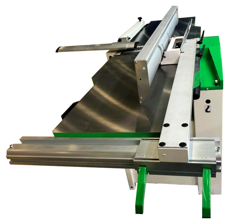 Столы откидываются поочередно, и базируются на специальных упорах, которые предотвращают повреждение станины станка. Принимающий фуговальный стол снабжен механизмом стопорения.