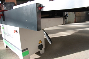 Высота подающего стола регулируется рычагом, отслеживание величины съема по шкале.