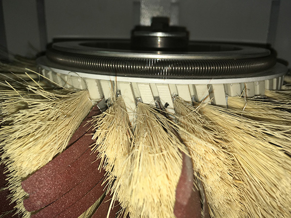 Шлифовальная секция представляет собой 2 поддерживающие щетки и шлифовальную щетку (при смене инструмента и перехода на другую шероховатость необходим поменять только шлифовальную ленту).
