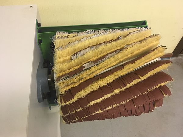 Шлифовальная секция представляет собой 2 поддерживающие щетки и шлифовальную щетку (при смене инструмента и перехода на другую шероховатость необходим поменять только шлифовальную ленту).