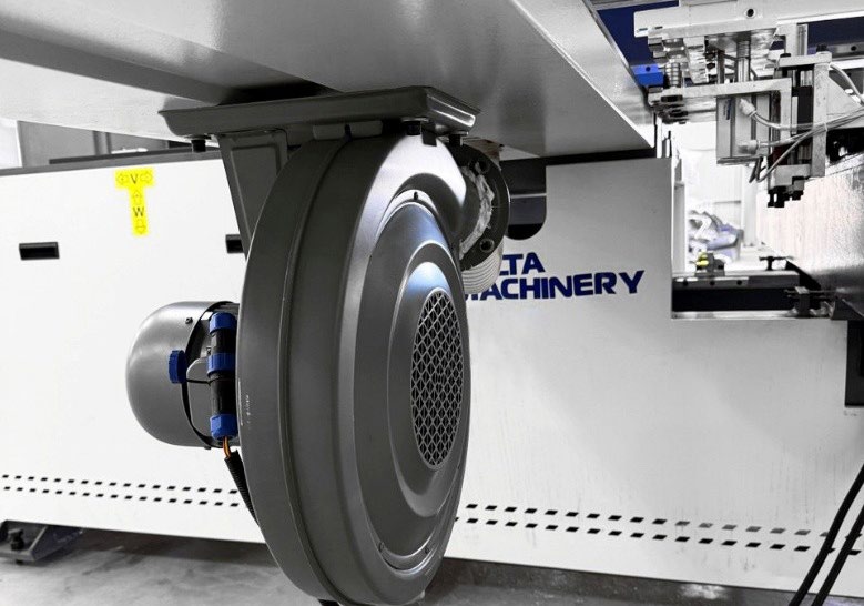 Подающий стол оборудован системой поддува, это позволяет без особых усилий подавать деталь, находящуюся на «воздушной подушке» в зону обработки и избегать царапин на поверхности материала.