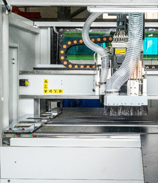 Использование промышленного управляющего компьютера, идеально сочетающего в себе различные программы для оптимизации карт сверления и фрезеровки, возможность работы со сканером штрихкода, в разы ускоряет производительность технологического процесса. Выполнение любых карт присадки с шести сторон за один проход детали, фрезерование прямых и криволинейных пазов с помощью фрезерного узла.