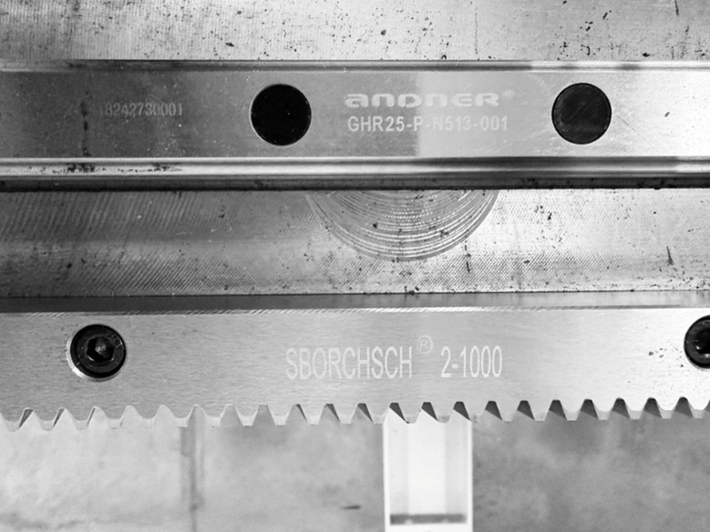 Ось Y перемещается по косозубой рейке, которая обладает большой несущей способностью, стабильно работает на высоких скоростях и обладает более высокой точностью.