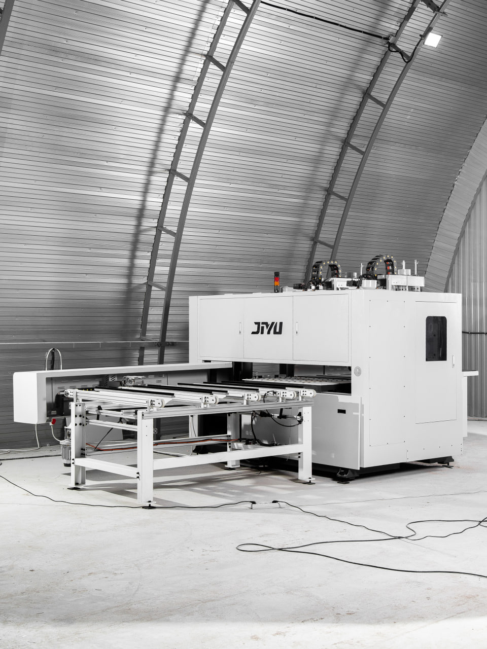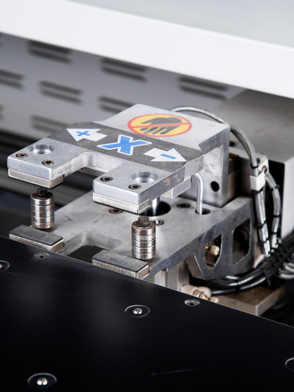 Программно-управляемый боковой упор с обрезиненными роликами для надежного и точного позиционирования детали.