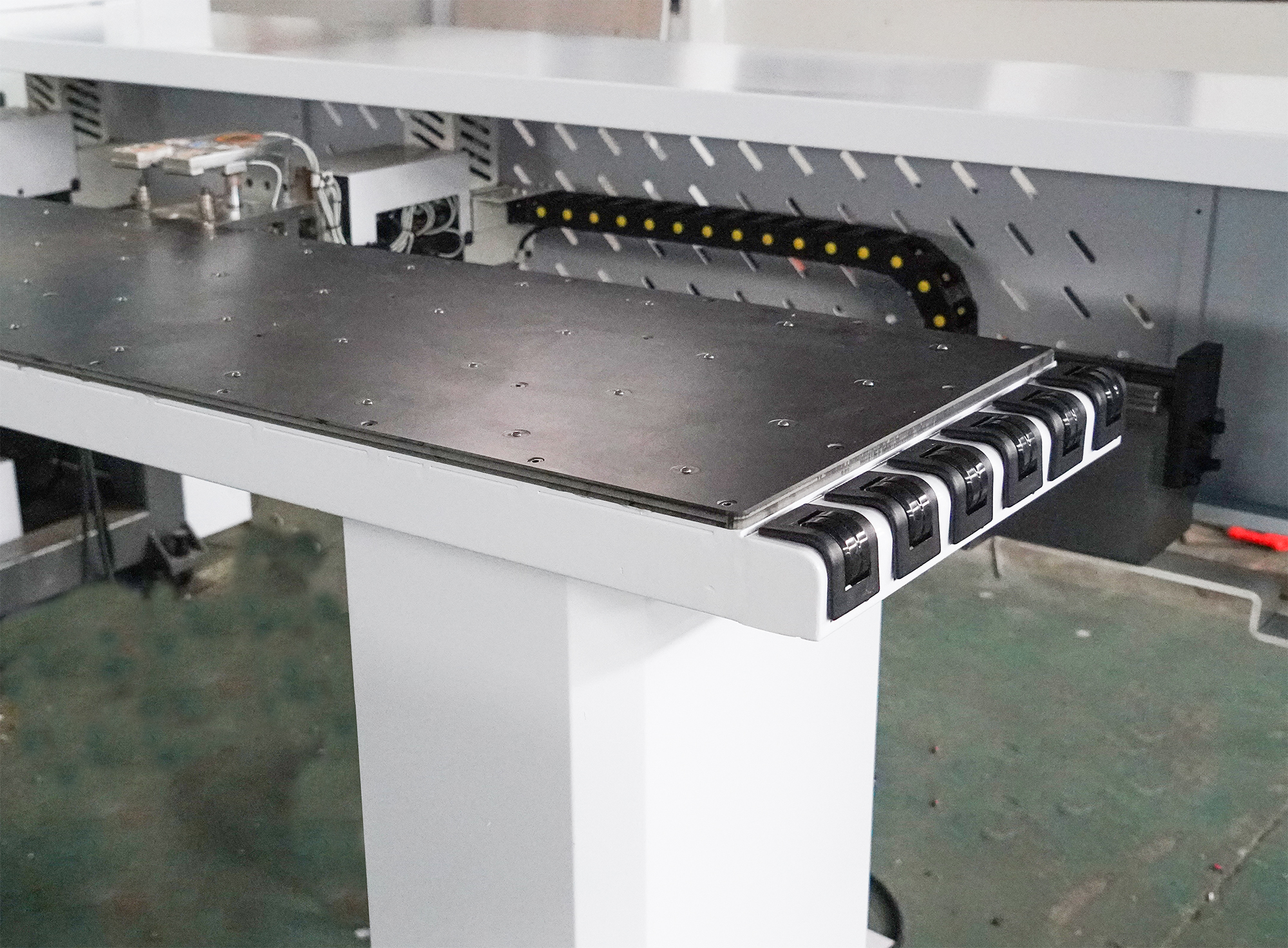 Ось Y перемещается по косозубой рейке, которая обладает большой несущей способностью, стабильно работает на высоких скоростях и обладает более высокой точностью