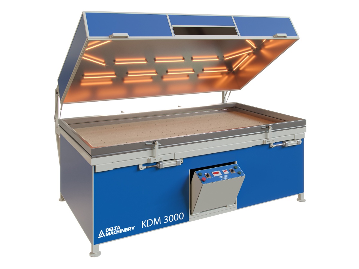 Вакуумный пресс KDM 3000 в модификации с откидным термомодулем отличается от других прессов, производимых нами, тем, что для открытия термомодуля в данной модификации используются газовые упоры. А так же, в данной модификации в базовом исполнении устанавливаются пневматические зажимы прижимной рамки. Они нужны для ускорения работы пресса, т.к. оператору не нужно производить никаких ручных действий с защёлками, они управляются с пульта вакуумного пресса.