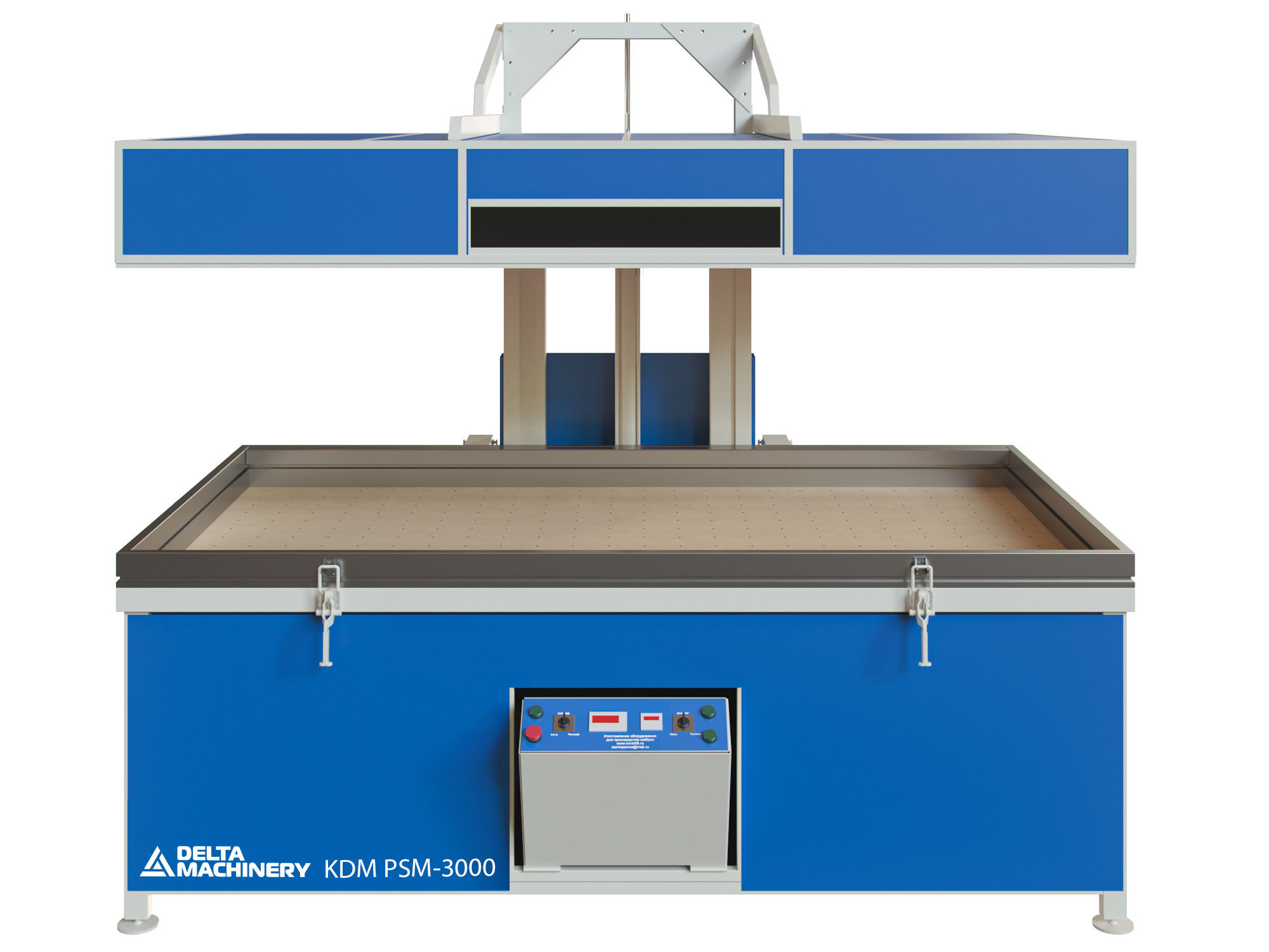 Вакуумный пресс для мебели KDM PSM-3000 – это удобное и эффективное оборудование, специально созданное для облицовки мебельных фасадов (МДФ, ДСП и т.п.) ПВХ плёнками, шпоном, пластиком, текстурированной бумагой.