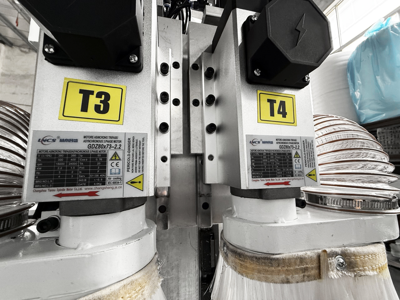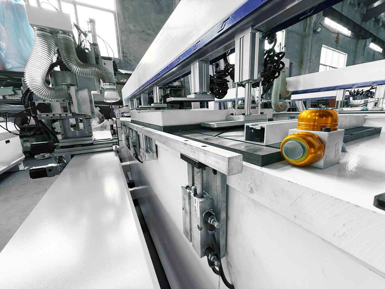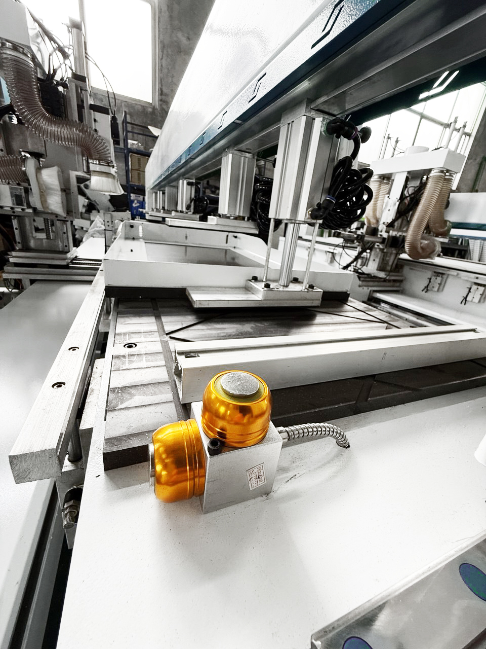 Оснащенный 4-мя шпинделями станок выполняет обработку торца и плоскости детали, выполняет множество операций, таких как торцевая присадка, фрезеровка различных пазов, обработка плоскости детали под различную фурнитуру, сверление отверстий под петли, эксцентриковые стяжки и множество других операций.